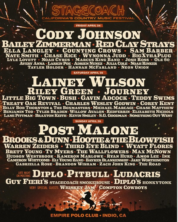 The three-day festival is scheduled to take place from Friday, April 24, through Sunday, April 26, one week after Coachella’s second weekend. Stagecoach is organized by Goldenvoice, the promoter behind Coachella and Portola, and happens at the same venue as Coachella in Indio, California.